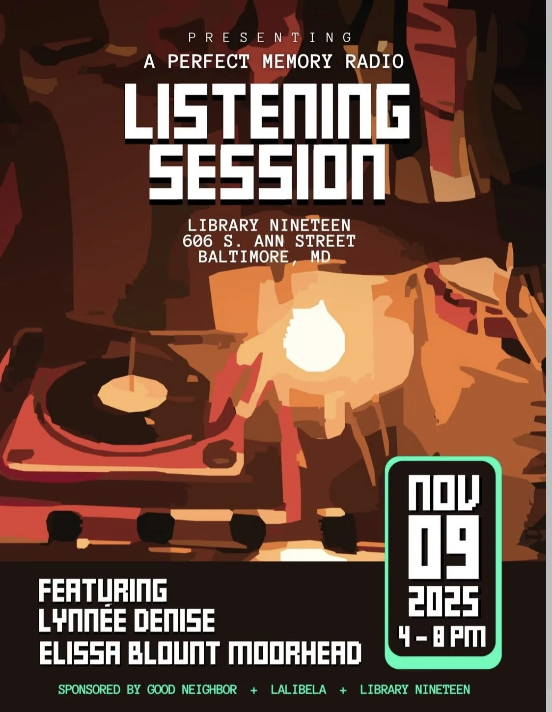 Listening Session 001 marks an initiation into the archive of feeling-an evening of musical communion between Lynnée Denise (@lynneedenise) and Elissa Blount Moorhead (@ebmoorhead), where sound is theory and memory is method.