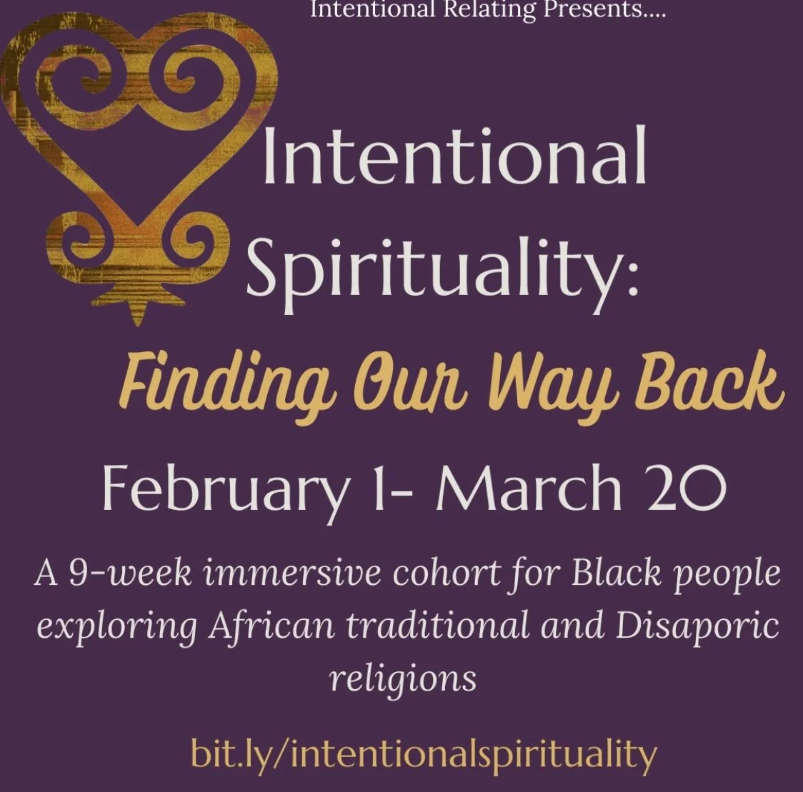 Intentional Spirituality: Finding Our Way Back is a 9-week immersive cohort for Black folks ready to begin (or deepen) their journey into African Traditional and Diasporic spiritual practices. We'll talk about decolonizing your faith, spiritual hygiene, ancestral veneration, and how to walk this path in alignment with who you really are.